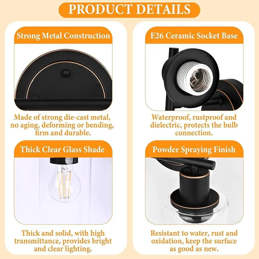 - Oil-rubbed bronze finish, a sturdy metal frame, and clear glass shades give you a vintage-meets-modern look that helps your space stay stylish year after year.