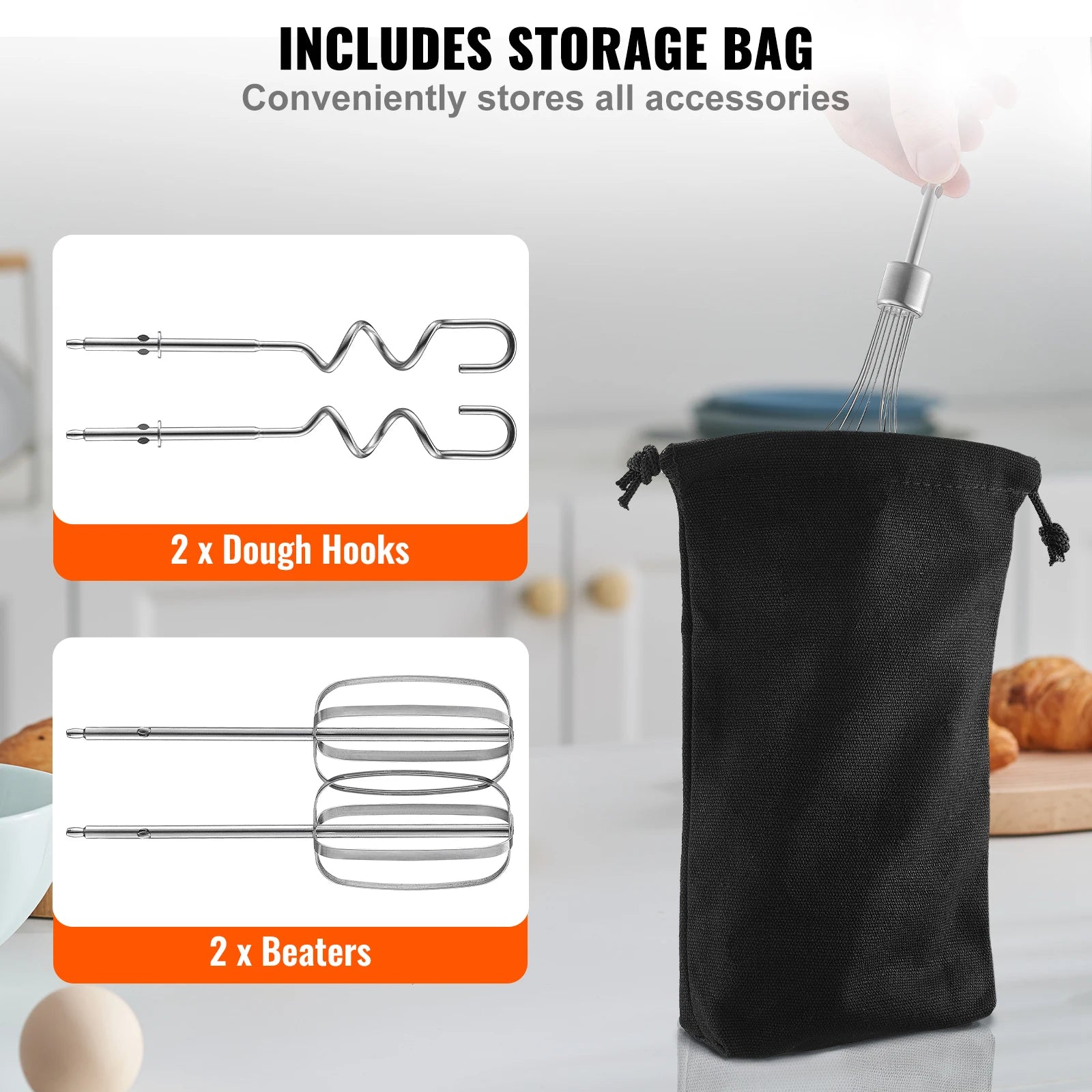 VEVOR Cordless Electric Hand Mixer Five Gear Speed 1100 RPM